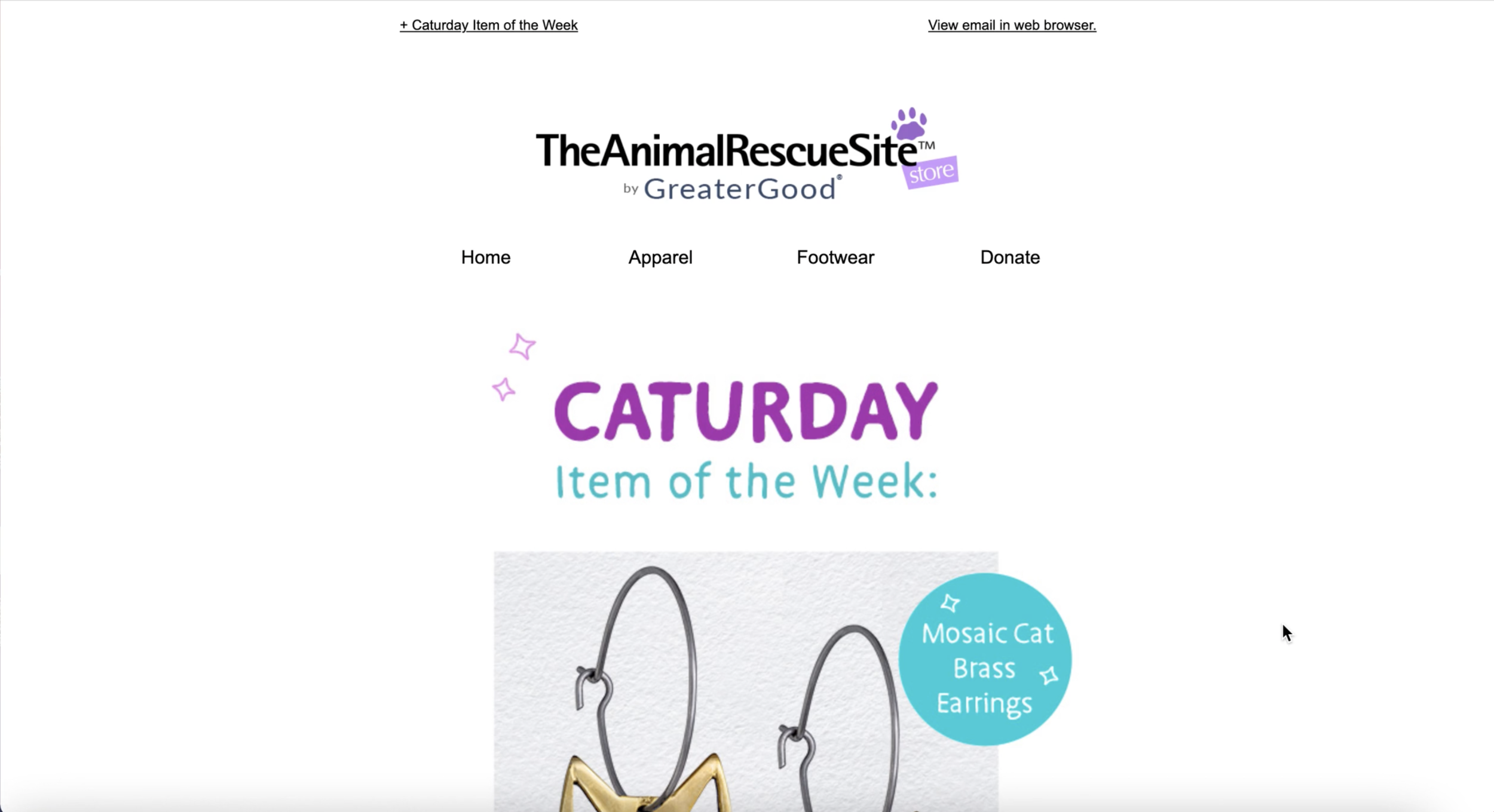 This is an example of an email showing the “Caturday” brand guide in use. With the use of the Caturday brand guide, designs will look fun and playful, but still clean and functional. I designed and coded this email.