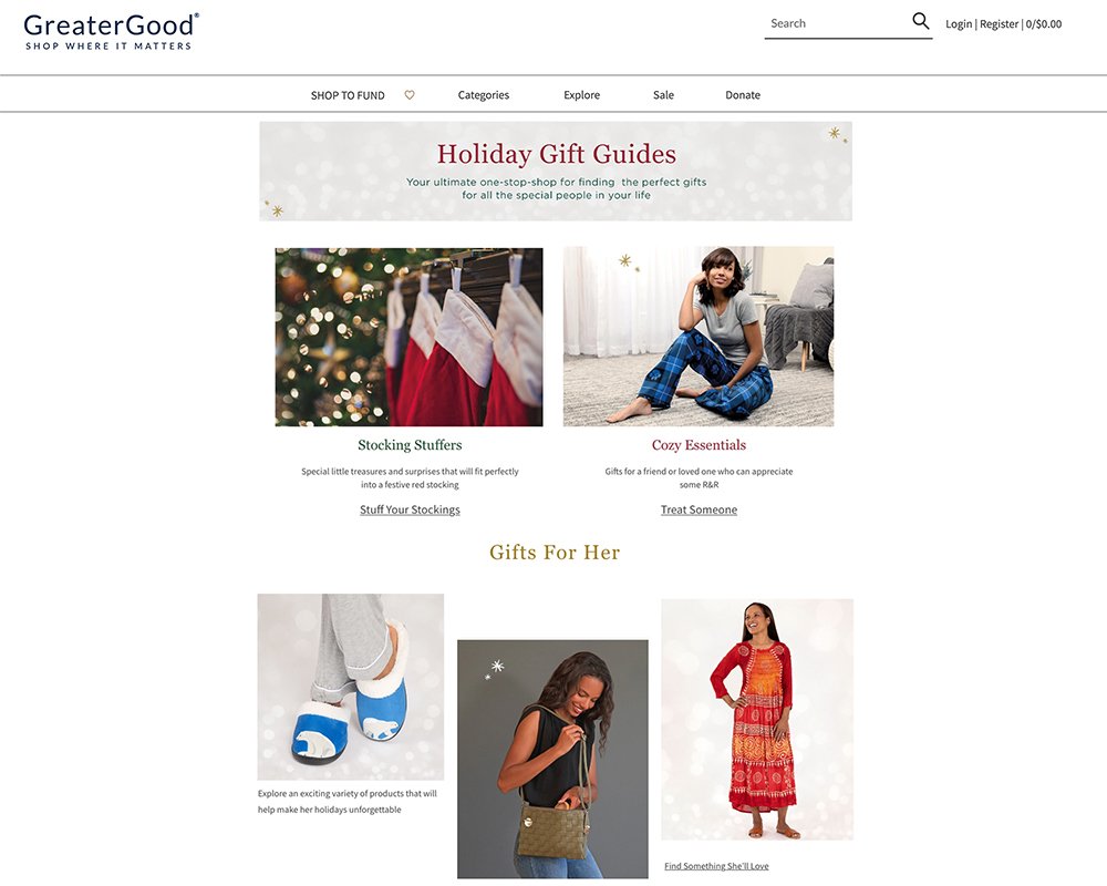 The goal for the Holiday Gift Guides is to drive traffic to the special holiday curated collections. The look and feel was meant to evoke an emotional appeal to get shoppers excited about the holidays. The gift guides were divided into many categories to help shoppers find the right present to fit their needs.